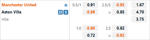 Phân tích tỷ lệ trận Man Utd vs Aston Villa (03h00)