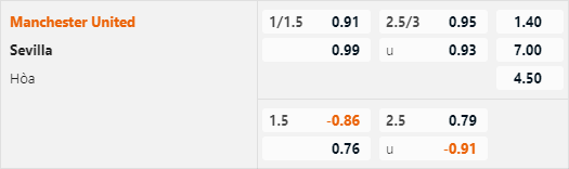 Chuyên gia AEGoal phân tích về tỷ lệ châu Á cũng như tài xỉu trận đấu giữa Man Utd vs Sevilla diễn ra lúc 02h00 ngày 14/4 trong khuôn khổ trận tứ kết lượt đi Europa League.