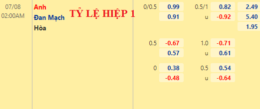 Soi kèo hiệp 1 trận Anh vs Đan Mạch