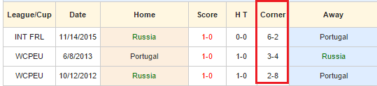 Chắc chắn Nga sẽ khó có được tỷ lệ kiểm soát bóng vượt trội so với Bồ Đào Nha, do vậy các cầu thủ chơi ở 2 biên của họ sẽ chú trọng vào vấn đề phòng ngự hơn là tấn công. Điều này dẫn đến xác suất được hưởng phạt góc của Nga sẽ ít nhiều suy giảm.