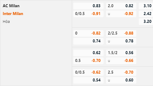Soi kèo tài xỉu, phạt góc trận AC Milan vs Inter Milan (02h00)