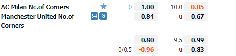Tỷ lệ tổng phạt góc của trận đấu đang được nhà cái công khai ở mức 9 1/2 và điểm ăn cân bằng, đây là tỷ lệ tương đồng với những trận đấu Europa League hôm nay. Trong thống kế đối đầu thì 2 cuộc chạm trán gần nhất không có nhiều tình huống phạt góc với nhiều nhất là 7 lần, 4 trận đấu gần nhất của AC Milan cũng không có trận nào vượt quá 9 tình huống phạt góc. 4 trong 5 trận gần nhất của Man Utd cũng có kết quả tương tự. Rõ ràng lối chơi của hai đội lúc này không thiên về những tình huống tân công từ 2 biên, do đó việc trận đấu không có nhiều tình huống phạt góc là điều tương đối dễ hiểu.