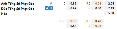 Khi phải đối mặt với đối thủ mạnh như ĐT Đức chắc chắn đội chủ nhà không thể thoải mái đẩy cao đội hình tân công như những trận đấu vòng loại, dó đó không có nhiều cơ hội cho đội chủ nhà tạo ra những tình huống phạt góc. Trong khi đó ở phía bên kia lối chơi của ĐT Đức không tạo ra nhiều tình huống phạt góc bởi họ không ưu tiên những tình huống treo bóng từ hai biên vào cho các tiền đạo. Lựa chọn cửa xỉu có lẽ sẽ lựa chọn tốt.