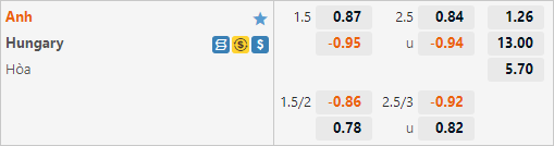 Phía bên kia Hungary hoàn toàn trái ngược, mặc dù bị đánh giá rất thấp ở bảng đấu nhưng họ luôn thi đấu với quyết tâm cao và có được kết quả xứng đáng khi thắng kèo châu Á cả 3 trận đấu ở lần tập trung này. Nhưng chuyến làm khách trên đất Anh lần này sẽ là một thử thách không nhỏ của Hungary bởi ĐT Anh chắc chắn sẽ thi đầu thận trọng hơn sau khi bất ngờ thất bại ở trận đấu lượt đi. Với sự thận trong ở cả 2 phía trận này thì có lẽ lựa chọn cửa xỉu sẽ là một lựa chọn tốt.