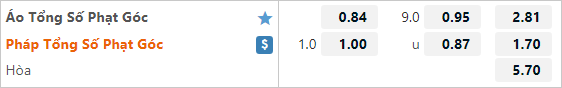 Theo thống kê thì ĐT Pháp chỉ có 2/6 trận đấu gần nhất có nhiều hơn 9 tình huống phạt góc, điều này có thể thấy lối chơi của đội khách không tập trung vào những tình huống bóng bổng. Với dự đoán ĐT Pháp làm chiếm ưu thế thì rất có thể trận đấu này cũng có kết quả tương tự bởi ĐT Áo không có nhiều thời gian kiếm soát bóng.