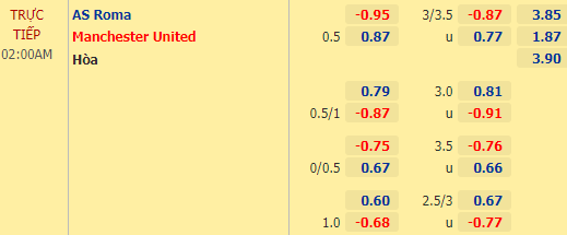 AEGoal soi kèo tổng bàn thắng và kèo phạt góc trận đấu giữa AS Roma vs Man Utd diễn ra lúc 02h00 ngày 07/05 trong khuôn khổ UEFA Europa League.