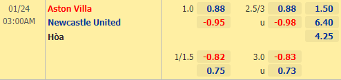 Chuyên gia AEGoal phân tích, dự đoán kèo tài xỉu, phạt góc trận Aston Villa vs Newcastle diễn ra lúc 03h00 ngày 24/01 trong khuôn khổ giải Ngoại hạng Anh.