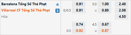 Tỷ lệ tài xỉu phạt góc được giới cầm cân nảy mức duy trì ở mức 9 1/2. Mức tài xỉu phạt góc của trận đấu tương đồng với mặt bằng chung của La Liga và không có gì bất thường. Điểm đáng chú ý là 3/4 trận gần đấu gần nhất của Barcelona đều có từ 9 tình huống phạt góc được ghi nhận, trong khi Villarreal chỉ có vỏn vẹn 4 tình huống phạt góc ở 3 trận gần nhất. Với dự đoạn Barcelona sẽ chiếm ưu thế trận này và mức tài xỉu 9 1/2 đưa ra thì có lẽ lựa chọn cửa tài vẫn là lựa chọn hợp lý hơn.