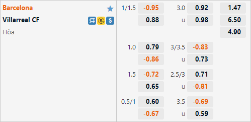 Giai đoạn hiện tại Villarreal không có kết quả tốt nhưng hàng thủ vẫn duy trì được sự ổn định khi chỉ thủng lưới 1 lần ở 5 trận đấu gần nhất, trong khi đó Barcelona chỉ ghi được 1 bàn mỗi trận ở 3 vòng đấu gần nhất của La Liga, với phong độ hiện tại của hai đội thì khả năng Barcelona gặp khó khăn trận này là rất cao, nhưng việc nhà cái châu Á duy trì mức tài xỉu 3 hoà lại cho thấy lựa chọn cửa tài chưa chắc đã là một lựa chọn nguy hiểm.