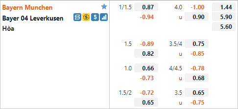 Với lực lượng vượt trội Bayern Munich đang có tỷ lệ chấp 1 1/4 trên sàn giao dịch châu Á. Ở cuộc đối đầu tương tự gần nhất Hùm xám cũng có tỷ lệ chấp 1 1/4 và họ đã giành chiến thắng 2-0 tỷ số vừa đủ để vượt qua rào cản do nhà cái đặt ra. Đội chủ nhà cũng đang chiếm ưu thế trong quá khứ đối đầu khi họ thắng kèo châu Á cả 5 cuộc đối đầu gần nhất với Leverkusen.