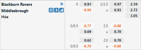 Trong khi đó thời gian gần đây Middlesbrough lại duy trì được phong độ ổn định với 7 lần thắng kèo sau 8 trận đấu gần nhất. Hàng công của đội khách cũng có được hiệu suất cao khi ghi được 9 bàn ở 4 trận đấu gần nhất. Có thể thấy cả Blackburn và Middlesbrough đều đang có lối chơi tương đối cởi mở.