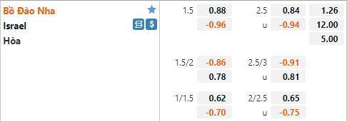 Trên sàn giao dịch châu Á hiện tại đội chủ nhà có tỷ lệ chấp 1 1/2 và mức điểm ăn ít. Đây là mức tỷ lệ chấp tương đối thấp nếu nhìn vào quá khứ đối đầu của hai đội. Ở lần đối đầu gần nhất của hai đội trận đấu cũng diễn ra trên đất Bồ Đào Nha năm 2013 đội chủ nhà đã có tỷ lệ chấp tới 2 hoà. Nhưng trận đấu đó đã quá lâu để làm thước đo cho trận đấu này. Tỷ lệ tài xỉu đang được niêm yết ở mức 2 1/2 và điểm ăn ít bên phía cửa tài.