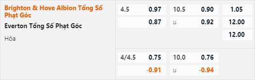 Soi kèo tài xỉu, phạt góc trận Brighton vs Everton (23h30)