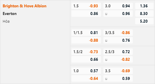Mức tài xỉu 3 hoà nhà cái công khai trận này cho thấy giới chuyên môn đang kỳ vọng một kịch bản sôi nổi với nhiều bàn thắng được ghi và dự đoán này hoàn toàn hợp lý với phong độ hiện tại của hai đội. 3/4 trận sân nhà gần nhất của Brighton có nhiều hơn 4 bàn 1 trận trong khi 3/4 trận gần nhất của Everton cũng có kết quả tài. Có lẽ lựa chọn cửa tài sẽ là lựa chọn hợp lý ở kèo tài xỉu