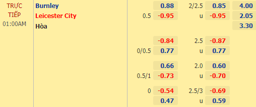 Dù 4 lần đối đầu gần đây giữa 2 đội đều có tối thiểu 3 bàn nhưng với mức tài xỉu 2 1/4 nhà cái đưa ra cho trận này thì khả năng bùng nổ bàn thắng là rất thấp. Đôi bên đều cần sự thận trọng, đặc biệt là Leicester bởi kết quả của cuộc chiến này có thể ảnh hưởng rất lớn đến tham vọng vươn ra trời Âu của họ.