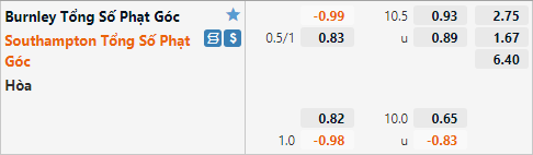 AEGoal soi kèo tổng bàn thắng và kèo phạt góc trận đấu giữa Burnley vs Southampton diễn ra lúc 01h45 ngày 22/4 trong khuôn khổ giải Ngoại hạng Anh.