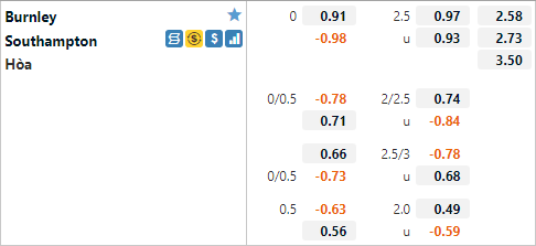 Với lợi thế sân nhà Burnley được nhà cái châu Á đánh giá nhỉnh hơn đối thủ chút ít với mức tỷ lệ 0:0 và điểm ăn ít. Đây cũng là mức tỷ lệ thường thấy trong quá khứ đối đầu của hai đội. Southampton đang chiếm ưu thế khi thắng 2 và hoà 1 ở 3 cuộc đối đầu gần nhất