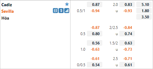 Với lực lượng vượt trội Sevilla được nhà cái châu Á đánh giá cao hơn với tỷ lệ chấp 3/4 trận đấu này. Đây cũng là mức chấp thường thấy của Sevilla trong quá khứ đối đầu của hai đội. Điểm đáng chú ý là Sevilla thường có kết quả tốt khi làm khách đến sân Cadiz, họ đã thắng kèo liên tiếp 5 trận gần nhất.
