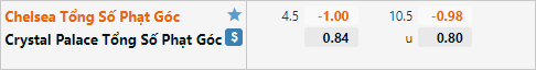 Tỷ lệ tài xỉu phạt góc của trận đấu đang được giữ ở mức 10 1/2, đây là mốc hơi cao so với mặt bằng chung của giải đấu. Theo thống kê thì trong 6 trận đối đầu gần nhất của hai đội chỉ có 2 lần ghi nhận nhiều hơn 10 tính huống phạt góc. Các trận đấu gần đây Chelsea cũng không tạo ra nhiều tình huống phạt góc, do lối chơi của họ không có nhiều tình huống treo bóng từ hai cánh và cũng không sở hữu nhiều cầu thủ chơi đầu tốt để sử dụng lối chơi đó. Nhiều khả năng trận đấu này cũng có kết quả tương tự khi Chelsea được dự đoán sẽ là đội chiếm ưu.