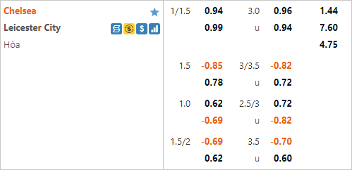 Chelsea hiện tại có tỷ lệ chấp 1 1/4 và mức điểm ăn cân bằng trên sàn giao dịch châu Á. Ở trận đấu lượt đi The Blues đã có tỷ lệ chấp 3/4 khi làm khách của Everton, có thể thấy mức chấp của Chelsea ở trận đấu này là tương đối thấp khi họ có lợi thế sân nhà. Điều này cũng không quá vô lý khi sức ép về mặt điểm số với đội chủ nhà cũng như đội khách đã không còn.