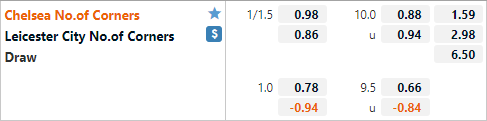 Chelsea đang được nhà cái đánh giá cao với tỷ lệ chấp 1/2 trên sàn giao dịch châu Á, đây là tỷ lệ hợp lý khi Chelsea có chất lượng đội hình tốt hơn Leicester. Tỷ lệ tài xỉu của trận đấu đang được công khai ở mức 2 1/4 và điểm ăn ít, nhìn vào mức tỷ lệ có thể thấy giới chuyên môn đang tin vào khả năng trận đấu sẽ diễn ra với một thể trận chặt chẽ.