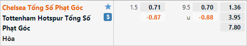 Nhưng Chelsea và Tottenham đều có được nhiều tình huống phạt góc ở 2 trận đấu gần đây, Chelsea có 16 tình huống phạt góc ở 2 trận gần nhất trong khi Tottenham cũng có 14 tình huống. Với dự đoán Chelsea sẽ làm chủ trận đấu trong khi Tottenham chơi chặt chẽ thì nhiều khả năng trận đấu này cũng sẽ nhiều tình huống phạt góc khi Chelsea sẽ không dễ dàng tiếp cận khung thành đối phương. Treo bóng từ hai cánh có thể là phương án tốt khi đội chủ nhà khó tiếp cận khung thành đối phương.