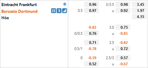 Hiện tại Dortmund đang được nhà cái châu Á đánh giá cao hơn với tỷ lệ chấp 1/2 trận này. Đây cũng là mức tỷ lệ chấp thường thấy trong quá khứ đối đầu của hai đội, ở trận đấu tương tự của mùa giải trước Dortmund cũng có tỷ lệ chấp 1/2 nhưng họ đã không thể vượt quá rào cản do nhà cái đặt ra khi chỉ có kết quả hoà 1-1.
