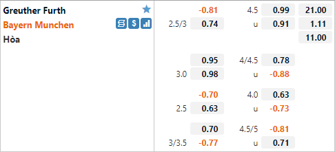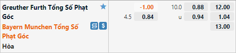 AEGoal soi kèo tổng bàn thắng và kèo phạt góc trận đấu giữa Greuther Furth vs Bayern Munich diễn ra lúc 01h30 ngày 25/9 trong khuôn khổ Vòng 6 - VĐQG Đức.