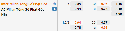 Soi kèo tài xỉu, phạt góc trận Inter Milan vs AC Milan (02h00)
