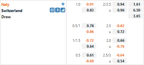 Đội chủ nhà đang được nhà cái đánh giá cao hơn với tỷ lệ chấp 1 hoà trên sàn giao dịch châu Á. Ở trận đấu tương tự trong khuôn khổ Euro vừa qua ĐT Italia đã có tỷ lệ chấp 3/4 và họ đã xuất sắc vượt qua đối thủ với chiến thắng 3-0. Việc nhà cái đưa ra mức chấp cao ở trận này cho thấy giới chuyên môn đang tin tưởng vào khả năng thắng của Italy.