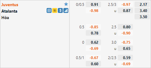 Với lợi thế sân nhà Juventus đang được nhà cái châu Á đánh giá cao hơn với tỷ lệ chấp 1/4 trận này. Đây cũng là tỷ lệ chấp thường thấy trong quá khứ đối đầu của hai đội. Mặc dù luôn được đánh giá cao hơn đối thủ nhưng Juventus chỉ có kết quả hòa tại Serie A 3 mùa giải gần đây khi tiếp đón Atalanta trên sân nhà.