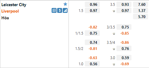 Liverpool đang được nhà cái châu Á đánh giá rất cao với tỷ lệ chấp 1 1/2 trên sàn giao dịch. Đây là mức tỷ lệ chấp rất cáo của đội khách, ở trận đấu tương tự của mùa giải trước Liverpool cũng chỉ có tỷ lệ chấp 1/2.