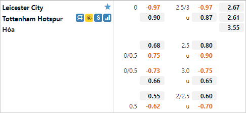Mặc dù có lợi thế sân nhà nhưng Leicester chỉ được đánh tương đồng với Tottenham khi nhà cái châu Á công khai mức tỷ lệ 0:0 trận này, thậm chí Tottenham còn được tin tưởng hơn với mức điểm ăn ít hơn. Ở trận đấu tương tự của mùa giải trước Tottenham được chấp 1/2 nhưng đội khách đã tạo nên bất ngờ khi giành chiến thắng với tỷ số 4-2.