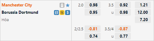 AEGoal soi kèo tổng bàn thắng và kèo phạt góc trận đấu giữa Man City vs Dortmund diễn ra lúc 02h00 ngày 15/9 trong khuôn khổ vòng vòng bảng Cúp C1 Châu Âu.