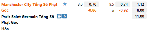2/3 trận đấu gần nhất của Man City cũng có nhiều hơn 9 tình huống phạt góc,trong khi chỉ có 1/5 trận đấu của PSG có từ 10 tình huống phạt góc. Với dự đoán trận đấu này sẽ diễn ra sôi nổi thì có lựa chọn cửa xỉu phạt góc sẽ là lựa chọn tốt khi hai đội không quá bế tắc trong những tình huống lên bóng tân công.