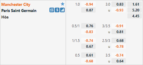 PSG thủng lưới tới 5 lần trong 3 trận đấu gần nhất, với lực lượng và lối chơi hiện tại thì việc hạn chế bàn thua trước Man City không phải là việc đơn giản, có lẽ việc tận dụng sức mạnh trên hàng công để bù lại sơ hở ở hàng thủ sẽ là lựa chọn của PSG. Điều này cũng đồng nghĩa với việc đội khách sẽ thi đấu cởi mở trận này, lựa chọn cửa tài sẽ là lựa chọn tốt.