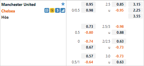 Mặc dù phải thi đấu trên sân Old Trafford nhưng Chelsea vẫn được nhà cái châu Á đánh giá cao hơn với tỷ lệ chấp 1/4. Đây là mức tỷ lệ chấp hợp lý khi Chelsea đã có tỷ lệ chấp 1 hoà ở trận đấu lượt đi khi có lợi thế sân nhà. Quá đang không ủng hộ Chelsea khi 3 lần đối đầu gần nhất với Man Utd họ chỉ có được kết quả hoà.
