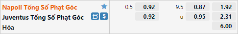 Nhưng lối chơi hiện tại của Napoli có vẻ không tạo ra nhiều tình huống phạt góc, 3 trận đấu gần nhất chỉ có từ 9 tình huống phạt góc, trận đấu gấn nhất của Napoli chỉ có 3 tình huống phạt góc được ghi nhận. Bên phía Juventus cũng có những thống kê tương tự khi chỉ có 1 trong 10 trận đấu gần nhất ghi nhận nhiều hơn 10 tình huống phạt góc. Với dự đoán hai đội sẽ tiếp cận trận đấu một cách thận trọng cùng với lối chơi hiện tại thì khả năng có nhiều tình huống phạt góc trận này là rất thấp