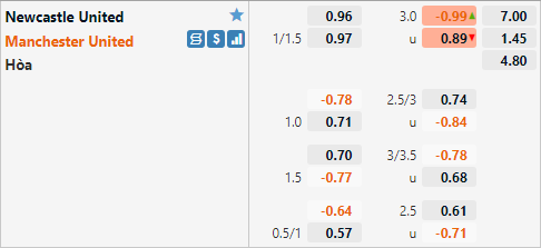 Với lực lượng vượt trội Man Utd đang có tỷ lệ chấp 1 1/4 trên sàn giao dịch châu Á. Đây là mức chấp tương đối cao của đội khách khi ở trận đấu tương tự của mùa giải trước Man Utd chỉ có tỷ lệ chấp 3/4. Nhưng mức chấp 1 1/4 trận này cũng không quá vô lý khi Newcastle đang có phong độ cực kỳ tệ hại.