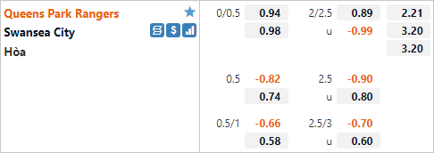 Với lợi thế sân nhà QPR đang được nhà cái châu Á đánh giá cao hơn với tỷ lệ chấp 1/4 và mức điểm ăn tương đối cân bằng. Có thể thấy đây là mức tỷ lệ thuận lợi cho đội chủ nhà khi ở trận đấu tương tự gần nhất Swansea City mới là đội có tỷ lệ chấp 1/4. Ở trận đấu lượt đi của mùa giải này QPR đã xuất sắc vượt qua đối thủ ngay trên sân nhà mặc dù bị đánh giá thấp hơn.
