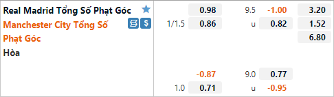 AEGoal soi kèo tổng bàn thắng và kèo phạt góc trận đấu giữa Real Madrid vs Man City diễn ra lúc 02h00 ngày 05/5 trong khuôn khổ bán kết lượt về UEFA Champions League