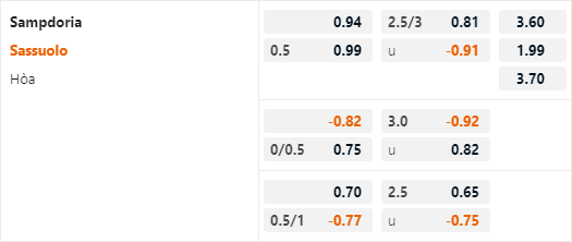 Hiện tại trên sàn giao dịch châu Á, Sassuolo được đánh giá ở cửa trên với tỷ lệ chấp 1/2 trận này. Có thể thấy nhà cái đang đánh giá cao đội khách khi ở cuộc đối đầu tương tự của mùa giải trước hai đội được đánh giá tương đồng với tỷ lệ 0:0. Ngay cả khi so với trận đấu lượt đi Sassuolo cũng có tỷ lệ chấp rất cao khi họ chỉ có tỷ lệ chấp 3/4 khi có lợi thế sân nhà.