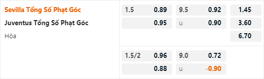 Tỷ lệ tài xỉu phạt góc của trận đấu được duy trì ở mức 9 1/2 và điểm ăn cân bằng ở 2 cửa. Đây là mức tài xỉu hợp lý và không có gì bất thường. 2 cuộc đối đầu gần nhất đều có ít nhất 9 tình huống phạt góc được ghi nhận. 4/5 trận gần nhất của Sevilla và 5/6 trận gần nhất của Juventus cũng có kết quả tương tự.