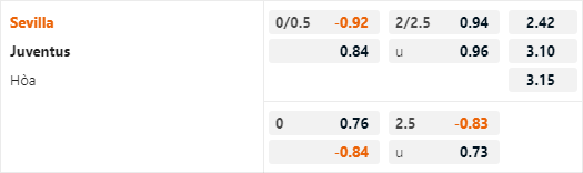 AEGoal soi kèo tổng bàn thắng và kèo phạt góc trận đấu giữa Sevilla vs Juventus diễn ra lúc 02h00 ngày 19/5 trong khuôn khổ Bán kết lượt về Europa League.