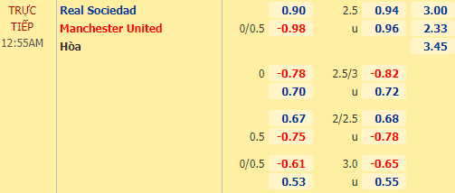Soi kèo tài xỉu, phạt góc trận Sociedad vs Man Utd (00h55)