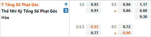Trong khi đó những trận đấu gần đây của ĐT Thổ Nhĩ Kỳ cũng có không ít những tình huống phạt góc khi có tới 4 trong 6 trận đấu gần nhất của họ có nhiều hơn 9 tình huống phạt góc 1 trận, có thể thấy lối chơi của cả Thổ Nhĩ Kỳ và Italia đều đem lại nhiều phạt góc. Nhưng với những phán đoán ở trên, khi ĐT Italia chủ động thi đấu một cách thực dụng thì khả năng trận đấu diễn ra sôi nổi là không cao và đây cũng là lý do để phán đoán trận đấu khó có nhiều tình huống phạt góc khi không có nhiều tình huống vây hãm thành của hai đội. Lựa chọn cửa xỉu phạt góc sẽ là một lựa chọn tốt.