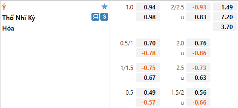 Ở 2 cuộc đối đầu gần nhất của ĐT Italia và Thổ Nhỉ Kỳ đều là những trân đấu giao hữu và có cùng tỷ số hoà 1-1. Trước khi trận đấu này diễn ra ĐT Thổ Nhĩ Kỳ đã có 3 trận đấu giao hữu ở giai đoạn chuẩn bị và họ đã có được kết quả không quá tồi khi thắng 2 và hoà 1 nhưng nếu nhìn trên sàn giao dịch châu Á thì có thể thấy Thổ Nhĩ Kỳ đã không đạt được kỳ vọng của giới đầu tư khi thua kèo 2 trận đấu gần nhất, thực sự thì hàng công của họ vẫn chưa có được phong độ tốt nhất khi chỉ ghi được 4 bàn sau 3 trận đấu với những đối thủ yếu hơn rất nhiều.