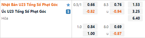 Tỷ lệ tài xỉu phạt góc của trận đấu đang được nhà cái duy trì ở mức 8 1/2 và điểm ăn rất thấp bên phía cửa tài. Có thể thấy mức tài xỉu này gần tương đương với mức 9 hoà. 2 trận đấu gần nhất của U23 Nhật Bản kết thúc với ít nhất 10 tình huống phạt góc 1 trận, trong khi bên phía U23 Australia không có trận nào có nhiều hơn 8 tình huống phạt góc ở giải này. Có thể thấy lối chơi của U23 Nhật Bản đem lại cho họ tương đối nhiều tình huống phạt góc, rất có thể trận đấu này cũng có kết quả tài phạt góc khi U23 Nhật Bản được dự đoán chiếm ưu thế.