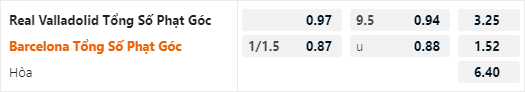 Các trận đấu gần đây của hai đội cũng thường ghi nhận nhiều tính huống phạt góc. Điều này cho thấy lối chơi của cả hai đội đều có thể đem lại nhiều tình huống phạt góc. Nhưng vơi dự đoán Valladolid có thể tạo nên bất ngờ với lối chơi thận trọng cùng với việc nhiều khả năng Barcelona sẽ sử dụng đội hình 2 thì lựa chọn cửa xỉu ở kèo tài xỉu phạt góc vẫn là lựa chọn đáng lưu ý, bởi với một thế trận như dự đoán thì phần lớn thời gian bóng lăn ở khu vực giữa sân và không có nhiều cơ hội để có các tình huống phạt góc.