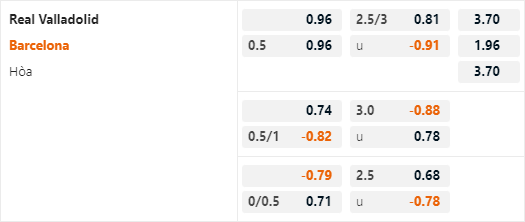 Với mức chấp 1/2 trận này của đội khách có thể thấy giới chuyên môn đang nghi ngờ khả năng thắng của Barcelona trận này. Điều này hoàn toàn dễ hiểu khi Barcelona đã không còn động lực thi đấu trong khi Valladolid cần phải chiến đấu hết mình để có cơ hội trụ hạng.